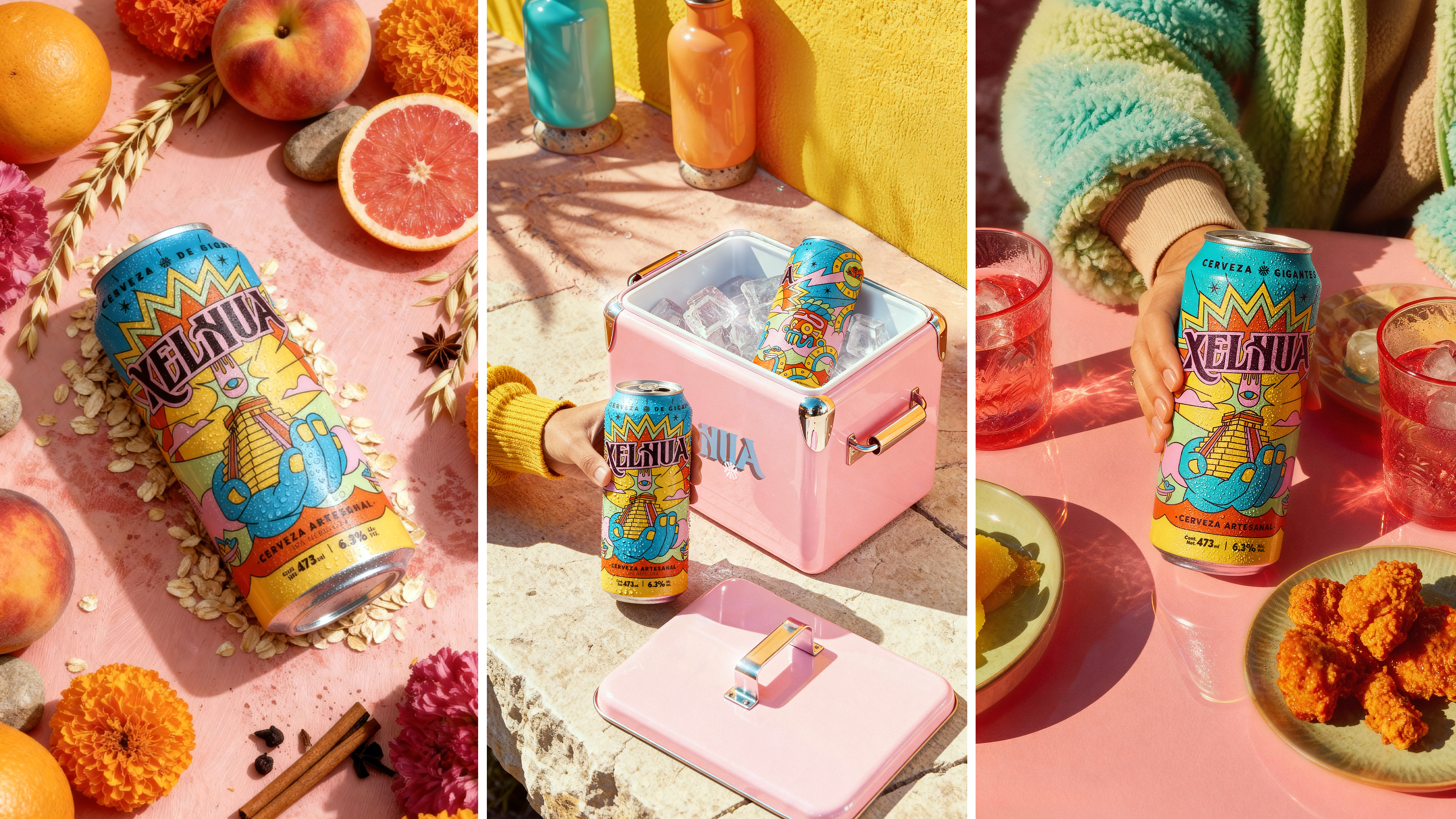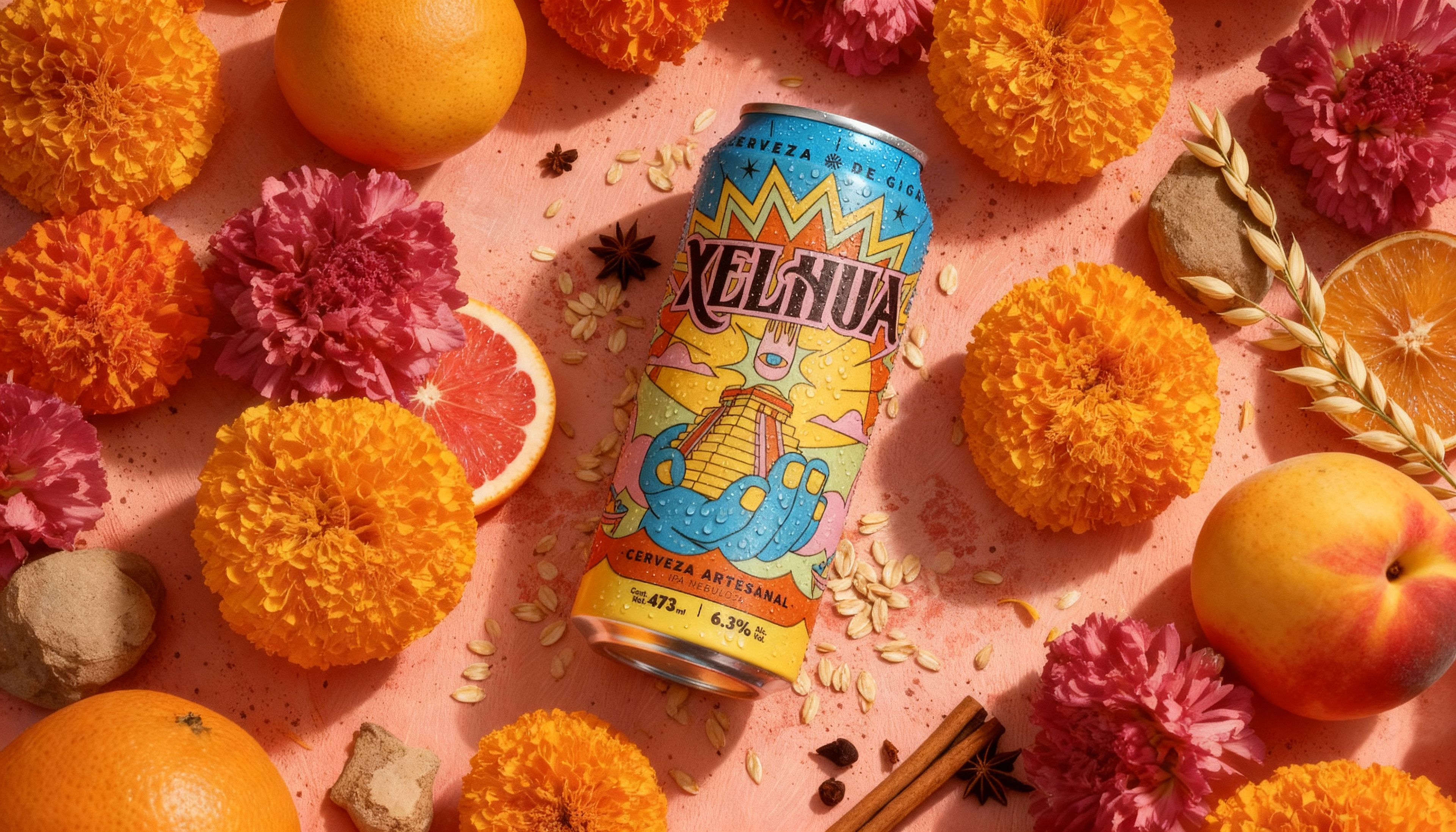 For Xelhua, we designed a photography concept that allowed the beer to live naturally across different moments, seasons, and lifestyles, but created through an AI-driven production pipeline. Our goal was to portray a premium and modern lifestyle for the brand, without losing its artisanal essence and rich cultural identity. Using Midjourney as our base illustration engine, we generated art-directed environments built from Xelhua’s own world, textures, fruits, flowers, and objects reflecting the colors and mythology present on the can.